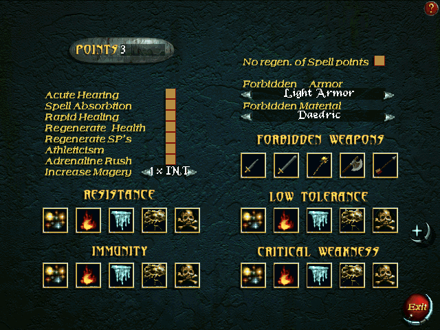 Como muitos outros CRPGs, começamos por inicialmente criar a nossa personagem. Começamos por escolher o sexo, a raça e definir os restantes aspectos físicos da personagem. Depois escolhemos uma de várias classes existentes, que por si só já possuem diferentes atributos nativos entre si. Depois lá teremos um número infindável de skills onde poderemos atribuir um certo número de pontos livremente. Sim, até coisas simples como saltar ou nadar possuem skill points associados. Esses pontos podem também ser usados para “comprar” algum equipamento inicial, como armas, armaduras e poções mágicas. Duas horas depois, lá começamos a aventura. Basicamente a nossa personagem é um aprendiz de battlemage, que se encontrava a treinar na academia de Battlespire. No entanto Battlespire foi invadida pelos Daedra (uma raça algo semelhante a demónios) e raptaram o nosso companheiro de armas. Ao longo do jogo teremos então 7 níveis diferentes para atravessar, que são essencialmente dungeons bem grandes, repletas de inimigos, puzzles para resolver, e algumas sidequests.