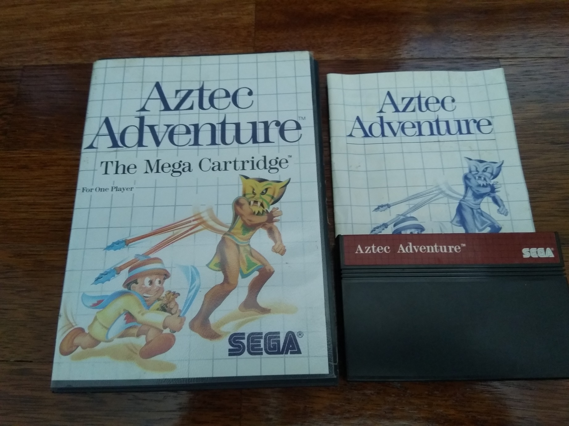 Aztec Adventure, que dos Astecas não tem nada a não ser o título, é um jogo de acção/aventura lançado pela Sega no final da década de 80, onde um jovem aventureiro percorre a américa do Sul em busca de um tesouro. No Japão é conhecido por Nazca 88, sendo que mudaram o seu nome para Aztec Adventure no Ocidente, talvez por se referir a uma civilização mais conhecida. Os adornos peruanos do protagonista e de alguns inimigos não são então por acaso! O meu exemplar foi comprado online algures em Abril deste ano, tendo-me custado 10€ se bem me recordo.