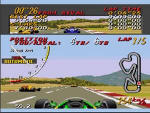 De resto, antes de cada corrida podemos dar algumas voltinhas para ficar a conhecer o circuito, bem como a prova de qualificação, cuja nossa performance ditará a nossa posição na grelha de partida da prova em si. De resto, infelizmente, ao contrário de outros jogos de Formula 1 da época não temos grandes hipóteses de customização dos carros que conduzimos, a não ser a parte da transmissão que podemos escolher qual o número de mudanças que a caixa permite. Quantas mais mudanças, mais controlo poderemos ter do carro e mais rendimento lhe conseguimos tirar. De resto, para termos acesso a carros melhores, só mesmo com o conceito de desafiar rivais é que nos dará acesso a carros com melhor performance. Para além do World Championship temos também o Free Practice, que conforme o nome indica permite-nos practicar em qualquer um dos 16 circuitos disponíveis, e o Monaco GP que é uma adaptação da versão arcade. Aqui podemos competir apenas no circuito de Mónaco, a diferença é que à medida que vamos avançando checkpoints, o jogo obriga-nos a estar cada vez melhor classificados.