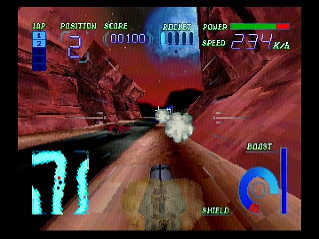 A nivel de jogabilidade, as coisas são simples, com um botão para acelerar, outro para travar e um outro para disparar mísseis, que podem ser coleccionados ao longo das pistas. Os restantes botões faciais do comando da Saturn servem para alternar entre os ângulos de câmara e os botões de cabeceira servem para usar os boosts esquerdo e direito respectivamente. É com recurso a esses boosts que temos de fazer as curvas apertadas sem ter de perder muita velocidade, mas nem sempre isso é tão fácil assim. De resto temos também de ter em atenção os nossos escudos durante as corridas, pelo que não convém ter muitos acidentes, e tentar fugir do fogo inimigo ou outras armadilhas deixadas nos cenários.