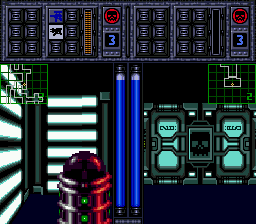 À esquerda de todo temos uma barra de energia que vai diminuindo à medida que sofremos dano, mas pode ser restabelecida ao apanhar alguns power-ups para o efeito. Na parte superior do ecrã temos o resto do que interessa. Da esquerda para a direita vemos duas matrizes, com 9 células cada. A primeira vai armazenando as chaves coloridas que podemos apanhar e que abrem certas portas . A segunda serve para armazenar as armas que vamos apanhando, sendo que o indicador seguinte mostra-nos quantas munições essa arma ainda tem disponíveis. Por defeito temos uma arma fraca com munição infinita, mas que não aparece nesse menu. A partir do momento que vamos apanhando novas armas, deixamos de conseguir usar a arma por defeito, a menos que esgotemos todas as suas munições. Depois essas armas são todas descartáveis, é possível encher aquele quadro só com armas do mesmo tipo, cada qual com a sua munição e a partir do momento que uma dessas armas fique sem munição, a mesma é descartada. Temos uma série de diferentes armas, algumas com rapid fire, outras com tiros em leque, outras que disparam explosivos, uma outra com um mecanismo de lock-on em alvos, entre outros.