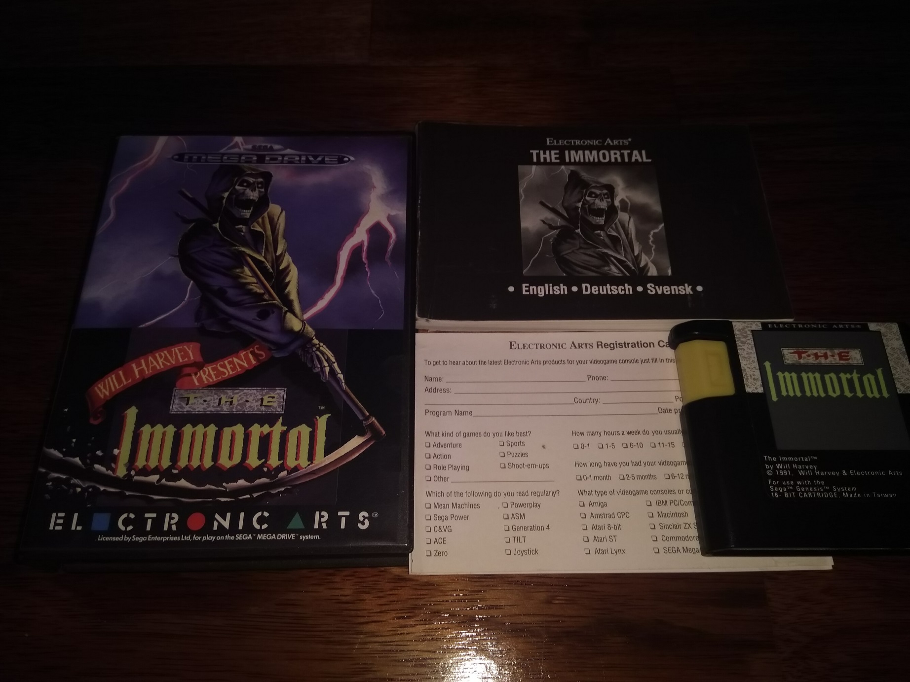 Quando comecei a explorar melhor a biblioteca da Mega Drive graças à emulação, um dos jogos que sempre me despertou alguma curiosidade foi precisamente este The Immortal, publicado pela Electronic Arts, mas com as suas origens em computadores como o Apple II GS ou MS-DOS. O que tinha gostado desde cedo era precisamente o aspecto sinistro dos cenários e personagens, no entanto a jogabilidade confusa e elevado nível de dificuldade, acabei por não lhe prestar mais atenção. Entretanto muitos anos se passaram e hoje em dia já consigo apreciar melhor jogos com jogabilidade arcaica e/ou complexa, pois vejo os jogos com “uma lupa” e tento encaixar-me no que havia na época. Mas, como sempre, já estou a divagar, pelo que vamos ao que interessa. O meu exemplar foi comprado a um amigo meu no mês passado, tendo-me custado algo em torno dos 5€.