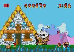 No que diz respeito à jogabilidade, bom… este é na mesma um jogo de plataformas em 2D, mas enquanto a versão Master System tinha a opção de nos deixar alternar livremente entre o Astérix e Obélix durante o jogo, aqui temos de escolher forçosamente um ou outro antes de começar cada nível. E por muito que goste do Obélix, não faz muito sentido escolhê-lo pois é menos ágil e é tão forte quanto Astérix, nesta versão. Para além disso o alcance dos seus ataques é ridiculamente curto. E a agilidade conta muito, pois este é daqueles jogos em que temos de ter reflexos de ninja, pois teremos imensos obstáculos e inimigos que surgem de todo o lado para nos atacar. Como não podemos saltar e atacar ao mesmo tempo, temos de jogar algo cautelosamente. Mas também não tão cautelosamente, pois temos um curto intervalo de tempo para completar o nível!