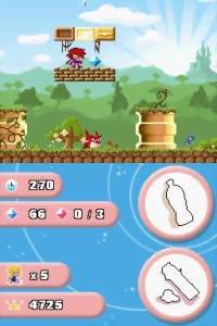 A história envolve uma jovem rapariga que se vê aprisionada num pesadelo, onde aparentemente teremos de coleccionar diamantes e derrotar um monstro qualquer no final. De facto, não prestei muita atenção a esta parte mas nem importa! Este continua a ser um jogo muito parecido com Super Mario Bros, onde Giana pode saltar em cima dos inimigos para os derrotar, bem como destruir blocos, incluindo aqueles que dão itens de volta. Um dos itens transforma a Giana na sua versão Super, podendo disparar bolas de fogo. Faz-vos lembrar de alguma coisa? Até alguns inimigos são parecidos com os do Mario, nomeadamente os Koopas. Outros itens interessantes são as máquinas de vending que podemos encontrar. Umas dão garrafas de coca-cola, outras pastilhas elásticas. As garrafas podem ser disparadas como jactos de líquido, capazes de destruir alguns blocos como paredes e chão. Já as pastilhas elásticas podemos usá-las para Giana fazer uma bola gigante e poder flutuar. Ambos terão de ser utilizados para ultrapassar alguns obstáculos!