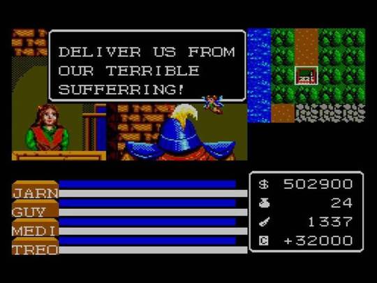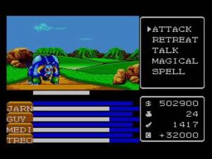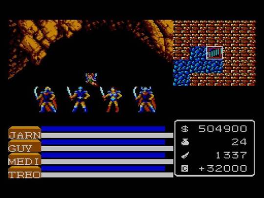 Na parte superior do ecrã, do lado direito, temos o mapa seja do overworld, cavernas ou cidades/aldeias. Do outro lado temos a vista principal que nos mostra as paisagem de onde estamos, ou no caso de transitar para uma batalha, mostra o nosso oponente. Bom, pelos screenshots eu sempre pensei que este fosse um RPG jogado na primeira pessoa, mas infelizmente não é bem assim, pois esse ecrã muda muito, muito pouco, apenas as cores tendo em conta o tipo de solo que estamos a pisar e pouco mais. As aldeias possuem quase sempre o mesmo ecrã, e as batalhas têm um ecrã típico para cada tipo de terreno.