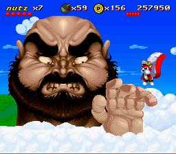 No que diz respeito aos audiovisuais, bom sinceramente o jogo até que é bastante colorido, e os níveis vão tendo algum detalhe, bem como sendo algo variados entre si, mesmo dentro de cada mundo. Vamos atravessar florestas ao longo de vários períodos do dia, escalar árvores, visitar a casa de uma bruxa, passar por cavernas vulcânicas, um circo, pelas nuvens, até chegarmos finalmente ao mundo gelado onde acabamos por defrontar o Yeti. No entanto, tanto o Mr. Nutz como muitos dos inimigos e os níveis em si têm um aspecto muito cutxi-cutxi que já não me agradou tanto. Excepto para um ou outro boss que até foram bastante bizarros. As músicas são bastante alegres, o que condiz com toda a atmosfera algo infantil do jogo, e a qualidade do som em si até que é bastante boa, as músicas não soam arranhadas como muitas o soam na Mega Drive.