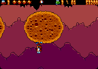 Mas vamos então às mecânicas de jogo. James foi redesenhado para ter uma aparência mais humanóide, pois agora possui braços e pernas em vez de barbatanas. Isto permite-lhe não só correr e saltar como antes, mas também dar socos e apanhar itens. E se por um lado não possui o fato de robocod que lhe permitia esticar-se no jogo anterior, possui agora uma espécie de botas magnéticas que lhe permitem andar em paredes ou mesmo no tecto, algo que teremos de dominar para passar alguns desafios de platforming. Depois tal como no jogo anterior vamos ver inúmeros itens e power ups. Os mais comuns são pequenas luas, onde a cada 1000 que apanhemos ganhamos uma vida extra. Outros variados servem apenas para nos darem pontos extra, mas teremos muitos mais itens que poderemos equipar e usar livremente. Alguns, como botas ou pedaços de queijo, possuem pouca utilidade a não ser servirem de degraus para alcançar algumas plataformas mais altas. Outros como um guarda chuva, se equipados servem para nos amparar as quedas, ou ums sapatos com molas que podem ser usados para conseguirmos saltar em elevadas alturas. Bombas ou dinamites que podem ser usadas não só para destruir as máquinas de Stiltonium, mas também para abrir passagens em certos túneis, paredes ou mesmo atiradas contra os inimigos. Jetpacks com combustível limitado que nos permitem voar livremente pelos níveis, armas que disparam comida, cujas munições podem ser maçãs (por defeito), morangos para rapid fire ou bolos para serem projécteis teleguiados. Muitos mais são os itens que podemos usar, pelo que neste aspecto o jogo até que está bastante bem pensado.