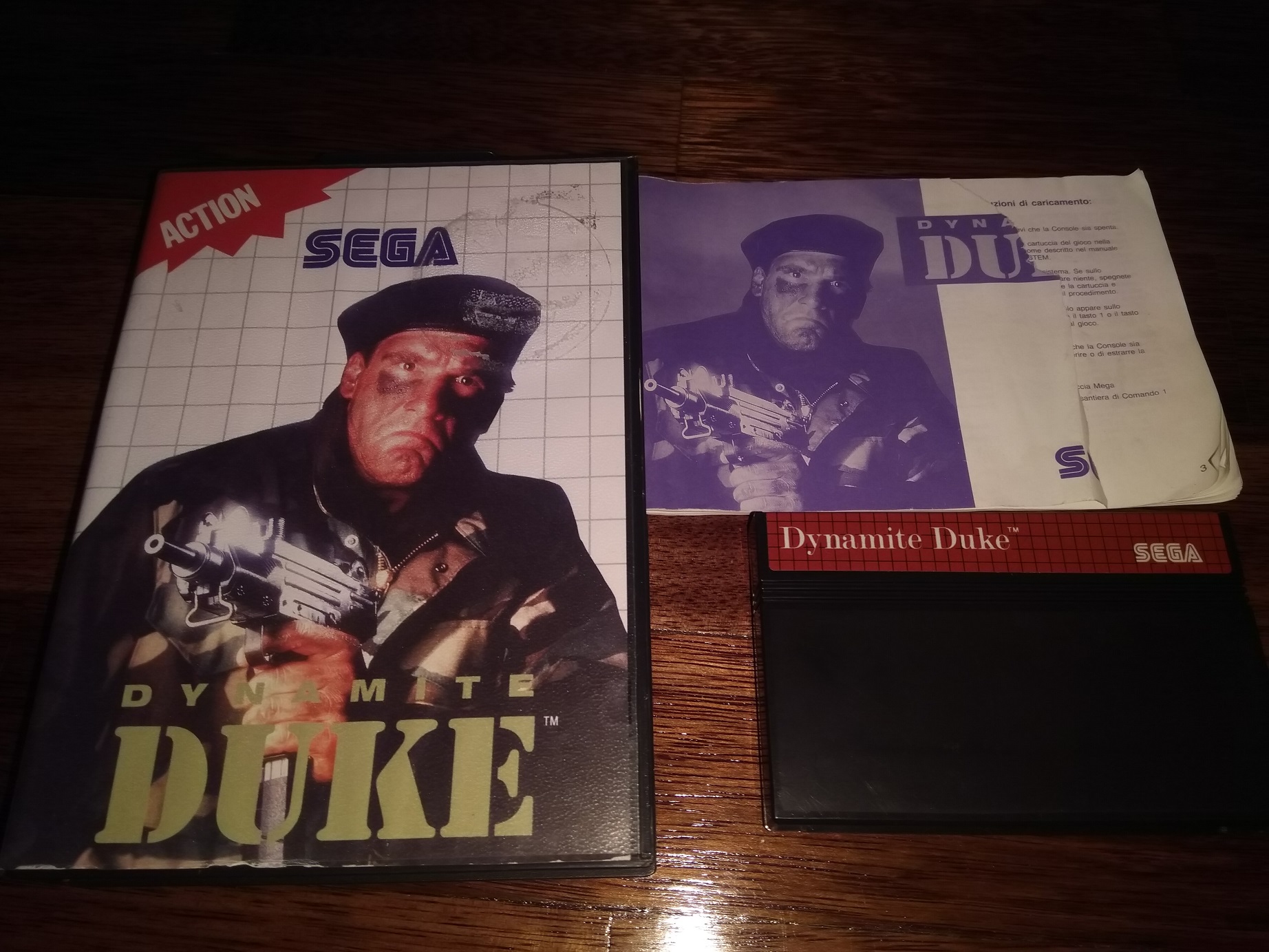 Voltando à Master System e às rapidinhas, o jogo que cá trago hoje é uma adaptação arcade, por parte da Sega de um jogo desenvolvido originalmente por uma outra empresa algo desconhecida, a Seibu Kaihatsu. Dynamite Duke acaba por ser uma sequela espiritual de Dead Angle, também convertido pela Sega para a Master System. Mas ao contrário desse jogo, este Dynamite Duke acabou também por ser convertido para a Mega Drive, cujo artigo recomendo a sua leitura. O meu exemplar foi comprado no passado mês de Novembro após ter sido comprado como um bundle de 6 jogos de Master System a um particular no facebook, tendo-me ficado cada jogo algo acima dos 6€.