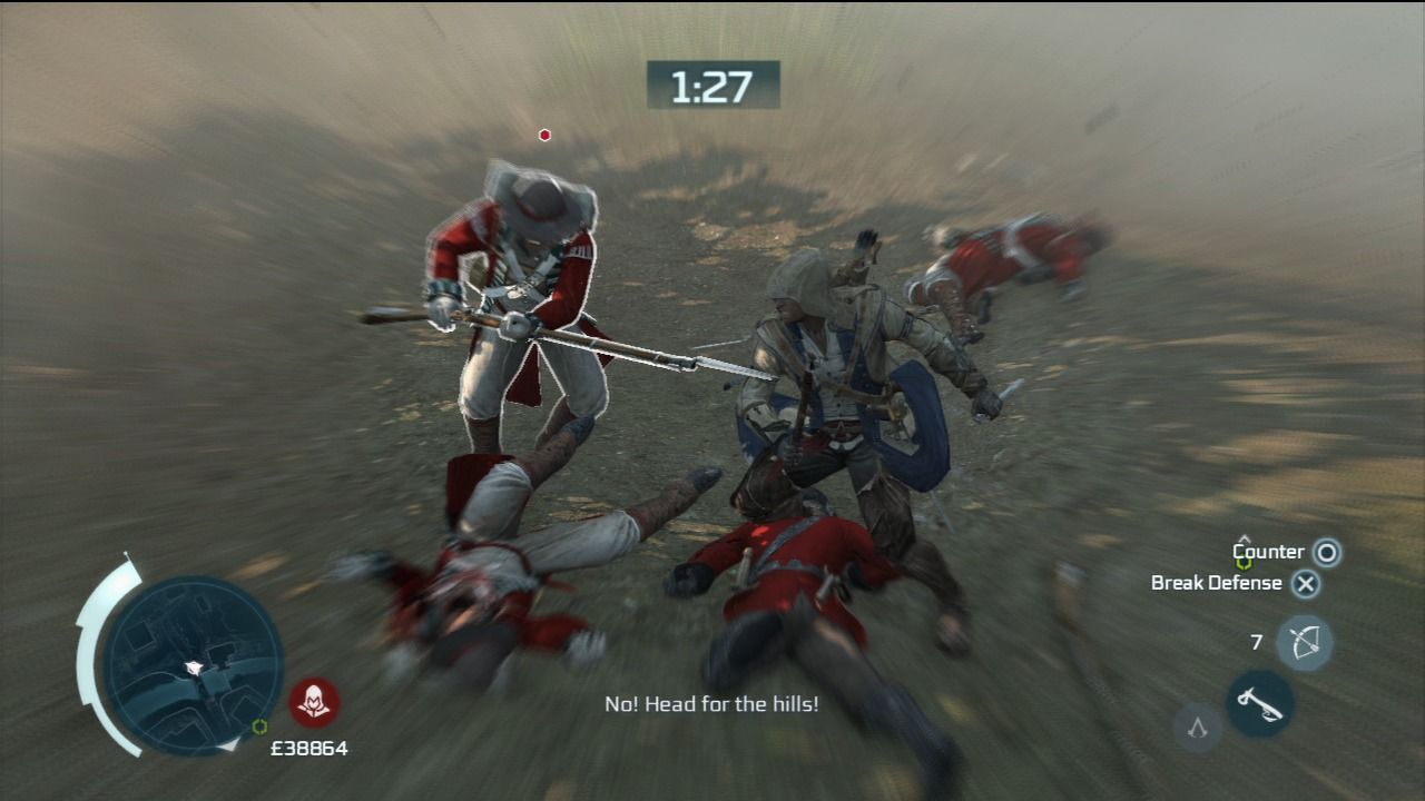Mais ou menos a meio do jogo podemos também desbloquear novos aprendizes a Assassinos, onde tal como nos jogos anteriores, podem ver as suas habilidades a evoluirem ao executarem missões em territórios vizinhos, mas também ao serem chamados ao terreno para nos auxiliarem directamente. Infelizmente apenas os podemos chamar nas cidades de Boston e Nova Iorque, tinha dado imenso jeito a sua ajuda para conquistar os fortes nas florestas. Isto também porque os soldados que combatemos são agora em muito maior número, patrulhando as cidades e zonas florestais em patrulhas com uns 6 ou 7 elementos, pelo que arranjar conflitos em zonas urbanas com maior concentração de soldados pode se tornar num grande desafio principalmente na primeira metade do jogo onde o nosso arsenal é muito mais limitado. Para além disso eles são mais organizados e atentos. Alguns juntam-se um pouco mais longe em fileiras de tiro enquanto outros (incluindo alguns soldados bem fortes no combate corpo a corpo) nos rodeiam. Usar os counters e movimentos de desarmamento ou quebra-defesas são imperativos nesses combates mais intensos. E mesmo aquele truque que antes usava de subir para telhados e executar um air assassination a um ou 2 soldados de cada vez agora é inútil pois a partir do momento que os soldados estejam com os seus olhos postos em cima de nós conseguem precaver esses ataques. Para além disso, em zonas mais fechadas, a câmara muitas vezes acaba por atrapalhar bastante nestes combates tão exigentes de reflexos rápidos aos movimentos dos nossos oponentes.
