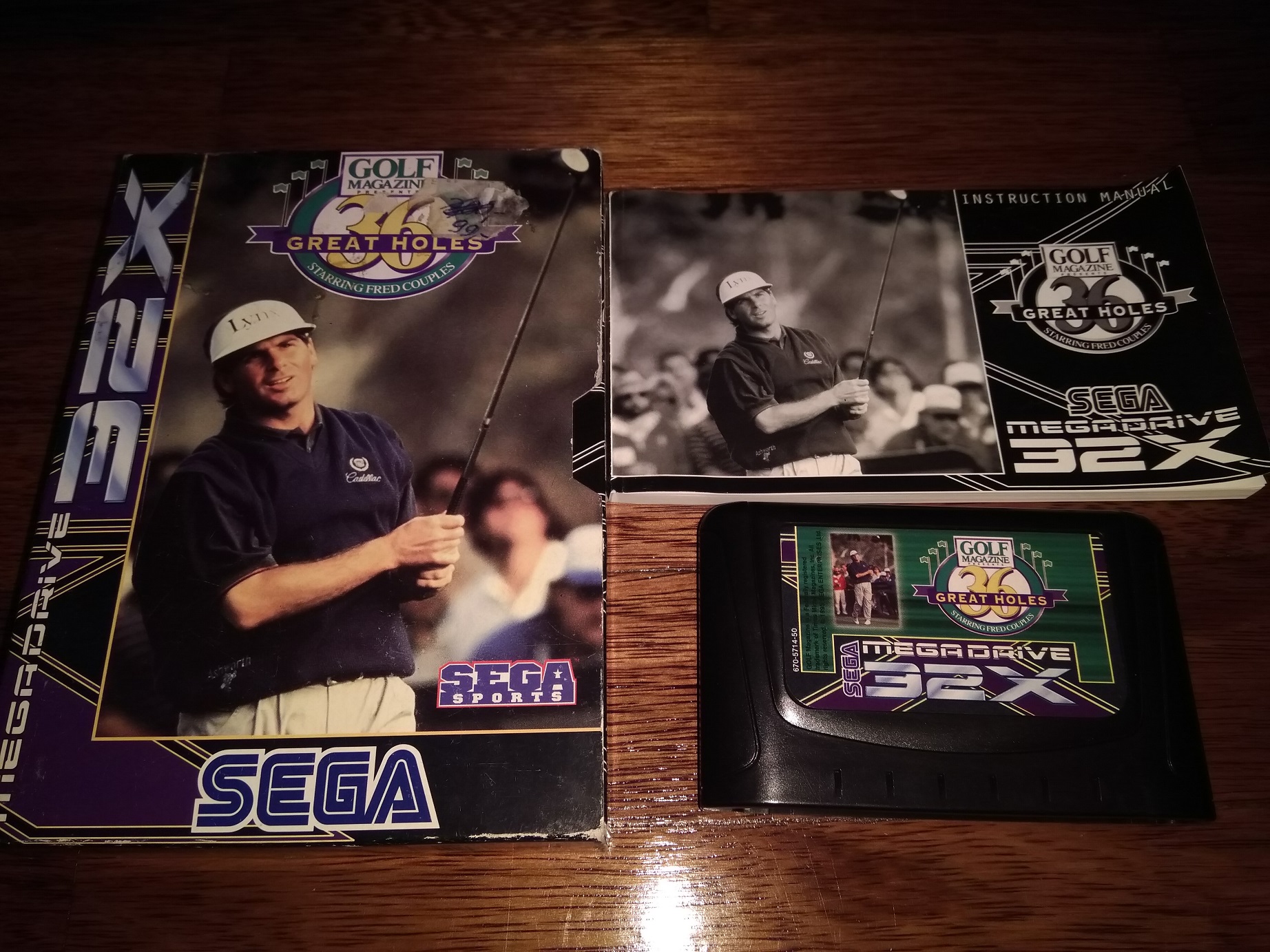 Voltando agora às rapidinhas e para um jogo desportivo, vamos ficar com um título de Golf, esse desporto que a mim me diz muito pouco, mas surgiu a hipótese de comprar um jogo 32X completo a um preço muito convidativo pelo que não a deixei escapar. Este meu exemplar veio de uma loja da Áustria, mais precisamente em Viena. Um amigo meu também coleccionador foi lá passar uns dias, descobriu a loja e acabou por me comprar umas coisas também. Este meu exemplar ficou por 9€.