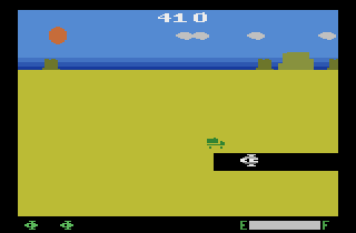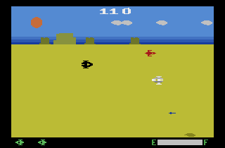 E assim está concluída a primeira vaga. Tal como muitos outros jogos da época este não tem fim e o objectivo é o de sobreviver o máximo de tempo possível e maximizar a pontuação. Um detalhe interessante é que ocasionalmente o jogo vai passando do dia para a noite e quando anoitece não conseguimos ver nada! Apenas quando disparamos é que o ecrã passa a ser visivel por alguns segundos, e é aí que teremos de memorizar onde estão os inimigos para abater e obstáculos para evitar. Mas cada vez que disparamos também perdemos um pouco de combustível portanto o desafio vai-se tornando cada vez maior.