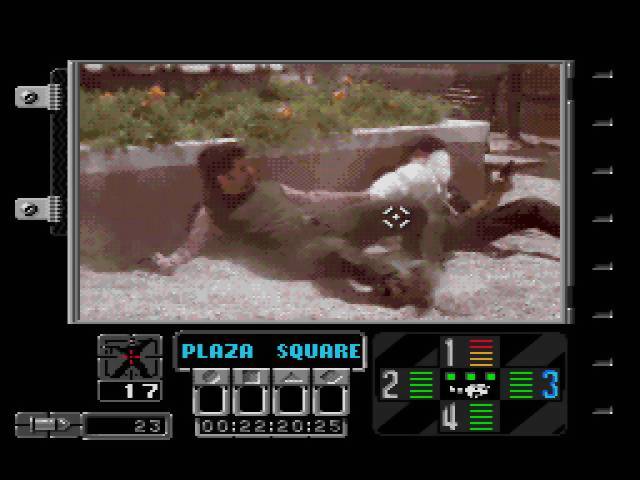 O jogo vai-nos então obrigando a saltar de câmara em câmara, tal como no Night Trap ou Double Switch, mas em vez de activarmos armadilhas, teremos mesmo um cursor para mover pelo ecrã e disparar. Infelizmente, ao contrário dos Lethal Enforcers, não podemos usar nenhuma light gun mas sim os próprios comandos da Mega Drive. Se não conseguirmos disparar nalgum alien a tempo, vamos sofrer dano e perder energia na câmara respectiva. Quanto mais dano sofrermos, pior será a qualidade da imagem dessa câmara, o que irá ainda dificultar mais a acção. Enquanto nos movemos de câmara para câmara podemos (e devemos!) também activar os seus escudos para a deixar durar mais tempo. Ao fim de algum tempo poderemos visitar a base do aliens e recuperar algumas das suas armas, mas depois disso o jogo entra na sua última fase, onde os extraterrestres enviam um grupo de soldados bem mais agressivos, que causam todo o caos e destruição naquela vila e vão-nos dar muito mais trabalho. Isto porque estes serão bem mais rápidos e ocasionalmente até aparecem aos pares, pelo que será muito difícil não sofrer dano nessa altura. Naturalmente que se perdermos muitas câmaras será game over e o governo norte americano eventualmente larga uma bomba nuclear para conter a ameaça.