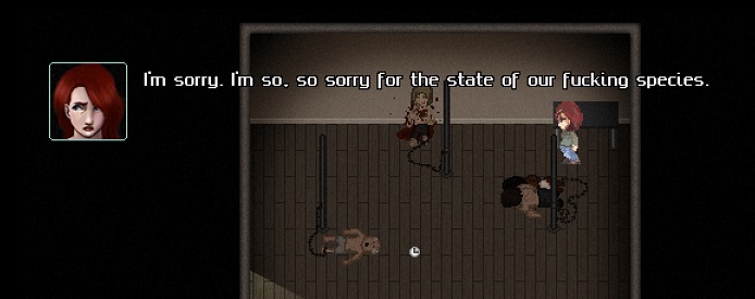 Já no que diz respeito aos gráficos, bom, não há outra forma de dizer isto, mas o jogo não tem muito bom aspecto. Eu gosto de jogos com um bom pixel art, mas devo dizer que já vi jogos mais bonitos a serem criados com o RPGMaker. Os cenários são o que ficou pior na minha opinião, mas tal como referi acima, a sua excelente narrativa acaba por superar largamente os visuais mais pobres. No que diz respeito ao som, nada de especial a apontar. As poucas músicas que existem adequam-se bem à atmosfera do jogo.
