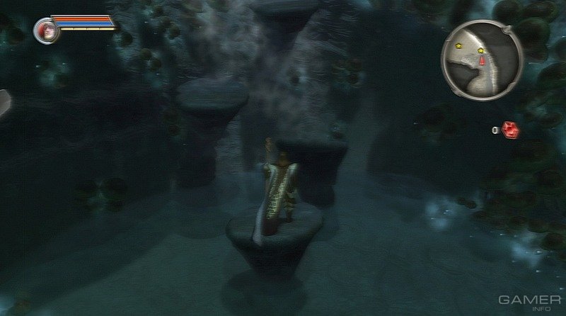 À direita vemos o save point, que para além de ser o mesmo sítio onde os checkpoints automáticos são despoletados, podemos comprar novas armaduras. Pena que não possamos vender as que tenhamos em excesso.