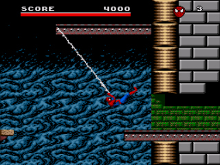 E o primeiro problema que vejo é que nem sempre é claro o que temos de fazer em cada nível, pelo que o manual ia dar muito jeito. Mas vamos por partes e abordar primeiro o Spider-Man, cujos controlos usam os botões faciais do comando da Mega Drive para saltar, atirar teias, tanto como projécteis para atacar os inimigos, como para nos balancear pelos tectos e edifícios. Logo no primeiro nível com o Spider-Man temos o objectivo de coleccionar uma série de objectos e só depois a saída fica desbloqueada. Mas nos níveis seguintes do aranhiço o objectivo é o de explorar os níveis até encontrar um boss e derrotá-lo. O Wolverine tem a habilidade de regenerar a sua barra de vida naturalmente, mas isso apenas acontece quando tem as suas garras retraídas. Os seus controlos consistem num botão para saltar, outro para atacar e um outro para activar/desactivar as suas garras. Os níveis de Wolverine também são relativamente simples nos seus objectivos: percorrer os níveis até enfrentar um boss, se bem que o segundo nível coloca-nos num confronto contra o Juggernaut que é incrivelmente doloroso (abençoados save states!).