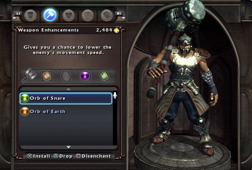 Nunca trocamos de arma ao longo de todo o jogo, mas podemos customizá-la com estas esferas mágicas que vamos apanhando