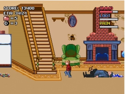 Sempre que os ladrões entrarem numa casa a ideia é então a de lhes causar o máximo de dor possível e evitar que roubem a mesma, seja pelas armadilhas, seja pelas armas que poderemos preparar e usar. Para isso deveremos tem em atenção as diferentes barrinhas que surgem no ecrã. A primeira, de munições, é relativa à quantidade de munições que temos para a arma equipada, enquando a barra de loot indica quanto da casa os bandidos já conseguiram roubar. A barra de pain indica a dor que já infligimos aos bandidos e a ideia é conseguirmos infligir o máximo de dor antes da barra de loot ficar preenchida. Se isso acontecer, essa casa é dada como perdida e os bandidos avançam para outra casa. Dentro do tempo limite temos de garantir que os bandidos não assaltam as casas todas, caso contrário não serão apanhados pela polícia. Mas tal como lá fora, também deveremos explorar bem cada casa, pois vao tendo outros itens para apanhar, e que costumam ter também alguns obstáculos como uma tarântula gigante na casa de Kevin, um robot numa casa futurista ou fantasmas numa casa antiga. Esses obstáculos tanto nos causam dano a nós, como aos bandidos.