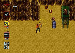 A versão Master System é um light gun shooter similar ao Operation Wolf, enquanto esta versão 16-bit já é um shooter similar a jogos como Ikari Warriors ou Commando. Curiosamente todos esses jogos tiveram como inspiração filmes como este Rambo ou Commando do tio Arnold. Mas enquanto jogos como Commando nos colocam num caminho linear, mas repleto de inimigos para enfrentar e com um boss no final, aqui há também um foco na sua exploração, isto porque numa grande parte dos níveis teremos de explorar bases inimigas e resgatar prisioneiros de guerra, ou destruir depósitos de munições.