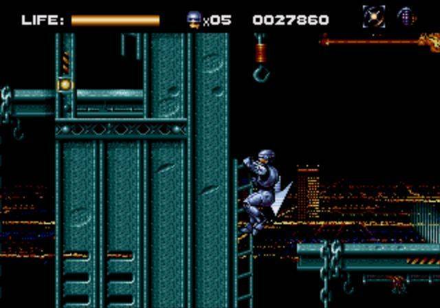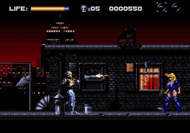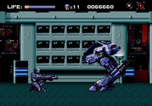 A história é então semelhante à versão da Master System, onde o Robocop acaba por viajar ao futuro apocalíptico em que a raça humana estava a ser exterminada através de cyborgs assassinos construídos pela inteligência artificial Skynet. O jogo é então mais um sidescroller em 2D, onde ao longo de vários níveis teremos diferentes objectivos para cumprir, desde resgatar reféns/prisioneiros, destruir radares, destruir uns quantos exterminadores ou pura e simplesmente sobreviver até ao final do nível, onde tipicamente teremos também um boss para defrontar. A nível de controlos as coisas são também simples, com um botão para saltar, outro para disparar e um outro para alternar entre arma. Esta foi a primeira diferença que vi na jogabilidade entre esta versão e a da Master System, pois aqui poderemos carregar 2 armas em simultâneo, sendo que as mesmas vão sendo atribuídas através de power ups que poderemos apanhar. Há um grande número de armas diferentes e algumas até possuem habilidades especiais. Por exemplo, a spread gun para além de disparar bolas de fogo em 3 direcções, é também capaz de absorver alguns dos projécteis inimigos, já a plasma gun pode derrotar um exterminador normal com um disparo apenas. Portanto, à medida que vamos conhecendo as diferentes armas e os seus potenciais, temos também de ter cuidado em não apanhar uma arma mais fraca, pois esta irá substituir a que estiver equipada naquele momento.