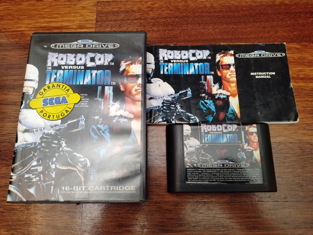 Há pouco tempo atrás deixei cá um artigo do Robocop vs the Terminator para a Master System. Foi uma das várias adaptações para videojogos do crossover que surgiu nas comics entre ambas as séries de filmes de acção e o resultado final, para uma plataforma 8bit até que foi um jogo de acção bem sólido. A versão de Mega Drive, apesar de ser algo semelhante no seu conteúdo, é muito superior graficamente, como irei detalhar mais lá para a frente. O meu exemplar foi comprado no passado mês de Outubro na CeX, tendo-me custado algo em volta dos 20€.