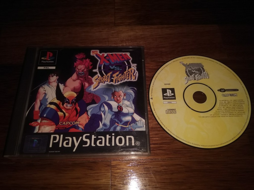 Vamos voltar às rapidinhas, agora para o primeiro verdadeiro crossover fighter que a Capcom lançou. Depois de terem produzido o X-Men: Children of the Atom e posteriormente o Marvel Super Heroes, alguém na Capcom achou que seria uma boa ideia fazer um jogo de luta em que colocassem as personagens da Marvel e da Capcom à batatada uns com os outros. O primeiro desses crossovers inclui apenas as personagens do universo X-Men da Marvel e Street Fighter do universo da Capcom, mas como todos sabemos isso acabou por mudar muito rapidamente. O meu exemplar foi comprado na Cash Converters algures em Dezembro deste ano, ficou-me por cerca de 40€ se bem me recordo.