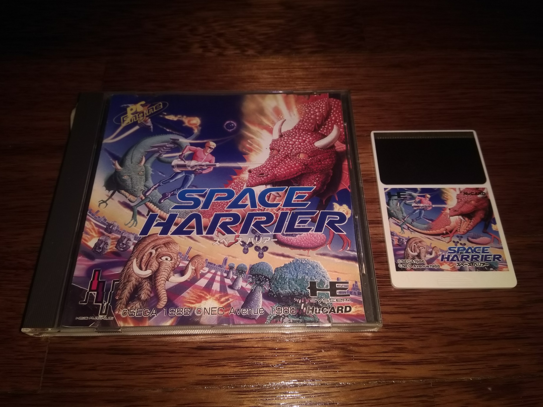 Continuando pelas rapidinhas, vamos ficar agora com a conversão para a PC-Engine de um grande clássico da Sega, o Space Harrier. Sim, a Sega que, mesmo já tendo os seus sistemas para suportar, nunca deixou de licenciar as suas propriedades mais icónicas para receberem conversões em sistemas na concorrência, fossem computadores ou consolas e isto aconteceu muito regularmente particularmente na década de 80 e primeira metade dos anos 90. Esta será uma rapidinha pois já cá falei no Space Harrier na sua versão Master System, claro. O meu exemplar veio num conjunto de uns 11 jogos de PC-Engine que importei directamente do Japão por pouco mais de 20€. Já os custos de transporte e principalmente os relacionados com o desalfandegamento… é melhor nem pensar nisso.