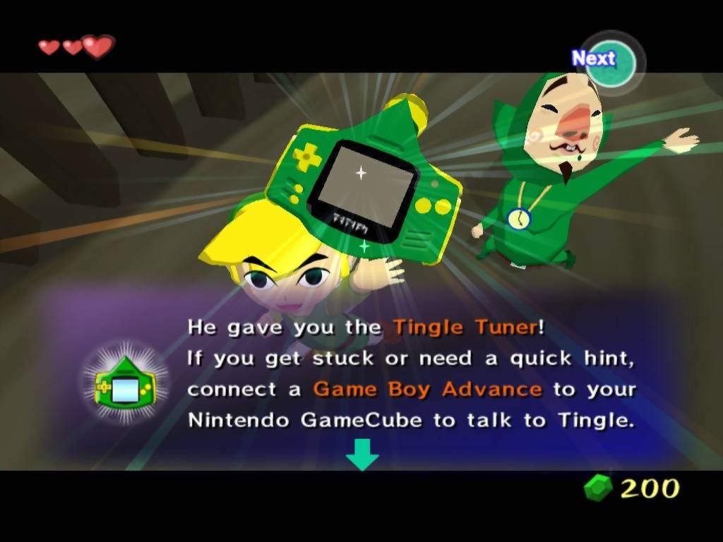 Tal como nos outros Zeldas em 3D teremos várias dungeons para explorar onde teremos de usar aprimoradamente os diferentes itens e melodias que aprendemos para o Wind Waker, não só para ultrapassar alguns obstáculos, bem como auxiliar nos combates e nos inúmeros puzzles que teremos de enfrentar. Mas nem só de dungeons vive um Zelda e a quantidade de sidequests e conteúdo escondido neste jogo é estonteante! Ao navegar pelos oceanos (que terão sempre alguns perigos como inimigos para atacar ou pequenas fortalezas ou ilhas para explorar) iremos também encontrar inúmeros tesouros no fundo do oceano e este jogo tem mapas para tudo! Mapas para encontrar tesouros valiosos, mapas para encontrar submarinos para explorar, mapas para as ilhas que tenham fadas que nos conferem habilidades opcionais mas que dão um jeitaço enorme, entre outros! Uma funcionalidade que não cheguei a experimentar na altura em que joguei este Wind Waker foi precisamente a sua integração com a Gameboy Advance, pois ainda não tinha o cabo de ligação entre os dois sistemas. Basicamente algures ainda relativamente no início do jogo encontramos o Tingle que nos dá um item que desbloqueia essa funcionalidade e, uma vez conectada a Game Boy Advance podemos chamar o Tingle para nos auxiliar nalguns pontos do jogo, a troco de algumas rupees. Era uma maneira de haver algum multiplayer cooperativo pois o segundo jogador controlaria precisamente o Tingle e activava as habilidades que achássemos necessário.