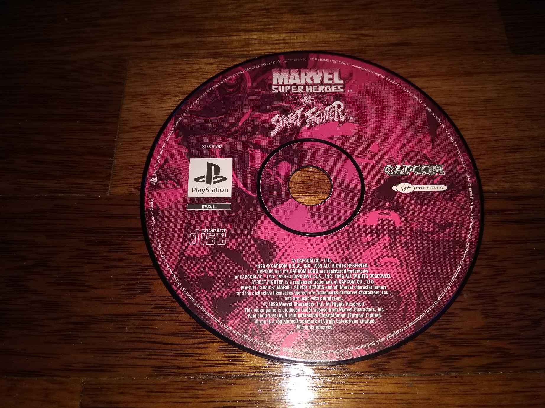 E a saga dos crossovers continuava! Após o lançamento do X-Men vs Street Fighter, que colocavam os X-Men da Marvel à porrada com as personagens do Street Fighter, a Capcom decidiu lançar uma sequela com mais personagens, principalmente do lado da Marvel, não se limitando aos X-Men apenas. O jogo saiu originalmente nas arcades em 1997, com uma versão para a Sega Saturn (que infelizmente se ficou apenas pelo Japão) a sair no ano seguinte e em 1999 a Playstation acabou também por receber uma conversão. O meu exemplar veio junto de um Marvel vs Capcom 2 que comprei numa das minhas idas à feira da Ladra em Lisboa, algures por volta de 2014/2015? O MvsC2 custou-me 2€, este disco vinha lá dentro também. Naturalmente que gostaria de arranjar um exemplar mais completo, mas não me posso mesmo queixar tendo em conta os preços a que o jogo anda actualmente.