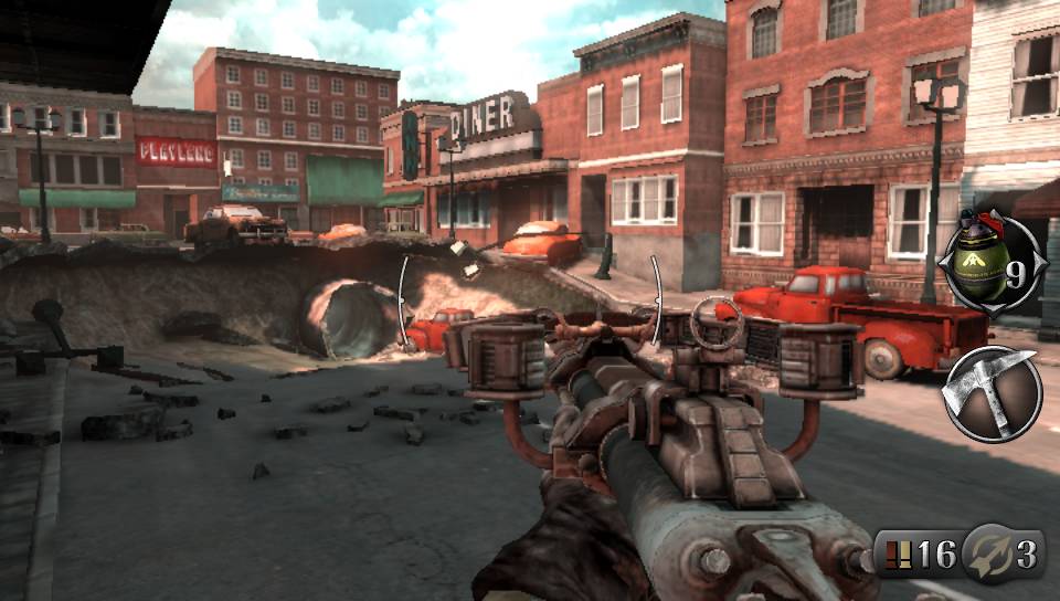 Já desde 2014 que não jogava nada desta série, pelo que pouco me lembrava a não ser que era um FPS onde lutávamos contra aliens e até tinham umas armas catitas. E depois de reler as minhas análises aos jogos da PS3, parece-me que este Resistance da PSVita decorre antes ou durante os eventos do Resistance 2, pois mostram o início do ataque da ameaça Chimera nos Estados Unidos, no início da década de 50. Tanto o Resistance 2 como 3 também se passavam em solo americano, mas o conflito já ia de vento em popa por lá! O nosso protagonista é um bombeiro de Nova Iorque que responde a um pedido de emergência para apagar um incêndio numa central eléctrica local e quando lá chega depara-se com os Chimeras a atacar e todo o caos que surge. A partir daí, o objectivo principal é sobreviver, reunir com a sua família e pelo caminho dizimar todos os Chimeras que nos apareçam pela frente. E sendo nós um bombeiro, ocasionalmente teremos também de salvar algumas pessoas de incêndios.