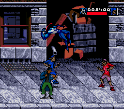Infelizmente não tenho muitas coisas boas a dizer deste Separation Anxiety. O primeiro jogo, Maximum Carnage, colocava-nos no papel de Spider-Man ou Venom e iríamos enfrentar muitos vilões do universo Marvel, culminando no confronto contra o próprio Carnage. Aqui acabamos por repetir a dose, se bem que agora temos a possibilidade de jogar de forma cooperativa com outro jogador, um controla o Spider-Man, o outro o Venom. A nível de mecânicas de jogo parece-me ser muito idêntico, pois estamos perante um beat ‘em up onde tanto uma personagem como outra podem distribuir pancada com um certo foco em combos, bem como usar as suas habilidades especiais, como usar as teias tanto para atacar os inimigos, como para se moverem mais rapidamente pelo ecrã, bem como podem também escalar paredes e edifícios. À medida que vamos jogando iremos também encontrar alguns power ups, que tanto nos podem regenerar a barra de vida, fornecer vidas extras, ou manter um stock de golpes especiais que podemos activar a qualquer momento no jogo. Estes invocam certas personagens da Marvel como o Captain America, Ghost Rider ou Daredevil, que surgem no ecrã durante uns segundos e lançam um ataque capaz de atingir multiplos inimigos em simultâneo. Mas sinceramente nem sempre são tão úteis assim. Os últimos níveis foram especialmente frustrantes!