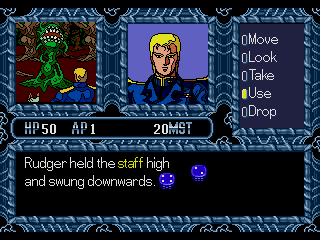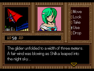 Não vou detalhar os 8 jogos separadamente, pois todos possuem histórias diferentes, mas partilham todos das mesmas mecânicas de jogo, inspirados em muitos outros jogos de aventura nipónicos, onde na parte inferior do ecrã vemos o texto com os diálogos e descrição do mundo à nossa volta, do lado direito temos o menu com as diferentes acções (move, look, take, use, drop), enquanto que o resto do ecrã está dividido em 2 janelas que mostram alguns gráficos, sendo uma delas o protagonista. Em cada uma dessas opções surge uma interface com as direcções onde nos podemos mover ou no caso das outras opções, menus com os objectos ou personagens com os quais podemos interagir. E sendo jogos de aventura teremos de explorar bem os cenários, falar com pessoas e adquirir uma série de itens de forma a progredir no jogo! O grande twist desta fórmula está precisamente nas batalhas, pois em certos pontos do jogo teremos mesmo alguns combates para enfrentar. E aqui o jogo retém alguns elementos de RPG, pois são batalhas por turnos, onde devemos atacar com alguns dos itens que entretanto vamos encontrando. O dano causado é que é algo aleatório, pois é calculado através do lançamento de dados, mesmo à velha guarda! De qualquer das formas são elementos muito ligeiros de RPG, não há qualquer level up e os combates não são assim tão frequentes, mas temos de nos preocupar em não deixar que a nossa personagem morra, pelo que teremos de encontrar também maneiras de nos regenerar a barra de vida após combates.