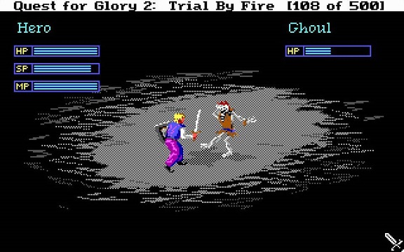 O primeiro Quest for Glory, apesar de ser um jogo que não envelheceu lá muito bem, não deixou de ser uma surpresa devido não só à sua não linearidade no seu progresso, mas também por ser um interessante híbrido entre um jogo de aventura gráfica e RPG. Mas desde cedo que equipa por detrás desse jogo que planeava lançar pelo menos 4 jogos (se bem que no final até foram cinco), pelo que não perderam muito tempo a lançar a primeira sequela, este Trial by Fire de 1991. O meu exemplar, tal como o seu predecessor e muitos outros jogos clássicos da Sierra que tenho vindo a trazer cá nos últimos meses, veio através de um bundle comprado para o steam algures no ano passado e que a muito bom preço ficou, tendo em conta que continha dezenas de jogos.