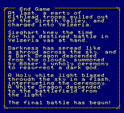 Portanto este Gaia no Monshou é um jogo que acredito que tenha sido muito importante para a génese dos SRPGs como conhecemos hoje em dia, mas não deixa de ser muito primitivo, tanto na sua apresentação como jogabilidade e ainda com muito pouco de RPG propriamente dito. E claro, como já referi bastantes vezes… o seu foco em pura sorte também é capaz de tirar qualquer um do sério.