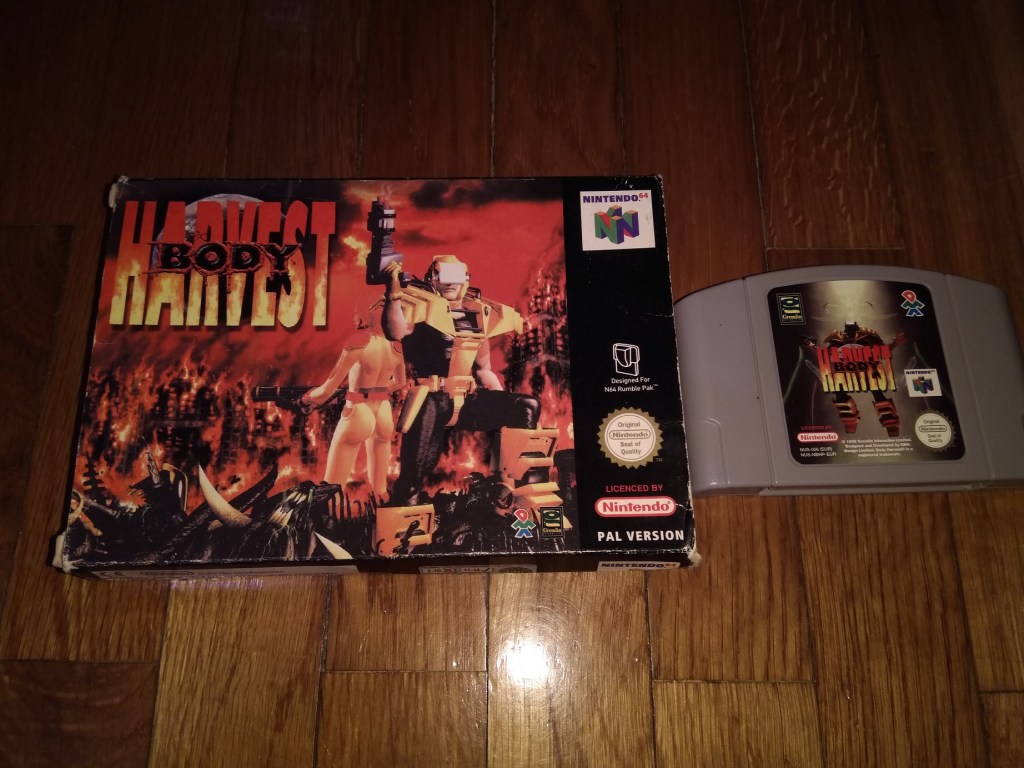 Vamos voltar para a Nintendo 64 e ficar com este Body Harvest, um interessante shooter com elementos de open world produzido por nada mais nada menos que a DMA Design, que mais tarde se viria a tornar num estúdio não muito conhecido… uns tais de Rockstar North! Apesar deste Body Harvest ser um dos primeiros jogos anunciados para a consola, pois a Nintendo seleccionou a DMA Design como um dos estúdios third party que fizeram parte da Dream Team, na verdade este jogo acabou por sofrer inúmeros atrasos no seu desenvolvimento precisamente por interferência da própria Nintendo, que inclusivamente acabou por desistir de publicar o jogo em seu nome. Então o Body Harvest acabou por ser lançado apenas em 1998, já com outros publishers, com a Gremlin a assumir esse cargo na Europa. O meu exemplar foi comprado algures em Novembro de 2018 numa loja online e creio que me custou uns 14€.