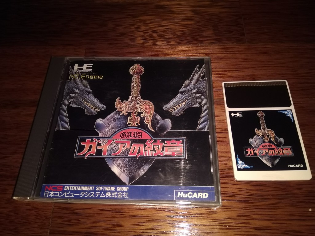 Vamos voltar à PC-Engine com um dos precursores da saga Langrisser, um dos primeiros, senão mesmo o primeiro, strategy rpg japonês. A saga de Elthlead, a tal precursora de Langrisser, começou precisamente com o lançamento de Elthlead numa série de computadores nipónicos em 1987. Ainda nesse ano é também lançado para os mesmos computadores este Gaia no Monshou (Crest of Gaia), que sinceramente nunca entendi muito bem se é uma sequela ou um remake do primeiro jogo. O que é certo é que este jogo acabou por sair também em 1988 na PC-Engine e felizmente acabou por receber também um patch de tradução feito por fãs. O meu exemplar foi comprado algures no ano passado, veio juntamente no bundle da PC-Engine Duo RX e mais uns quantos jogos que comprei a um francês no eBay.