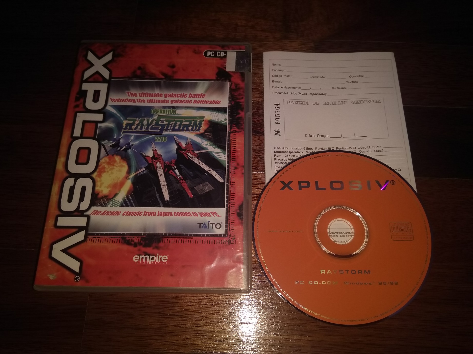 Raystorm é o terceiro título da saga que se iniciou com o RayForce em 1993 nas arcades, mas é o primeiro da série a ser completamente em 3D poligonal. Foi lançado originalmente também nas arcades em 1996, tendo posteriormente recebido conversões para múltiplos sistemas (incluindo a Sega Saturn, sob o nome de Layer Section 2, no Japão apenas) nos anos seguintes. Na colecção tenho por cá uma versão manhosa de PC que comprei por 1€ a um vendedor numa feira de velharias há uns meses atrás, bem como uma interessante versão rental para a Playstation, que comprei a alguém no facebook por 10€ algures no passado mês de Junho. Será precisamente na versão Playstation que irei incidir este artigo.