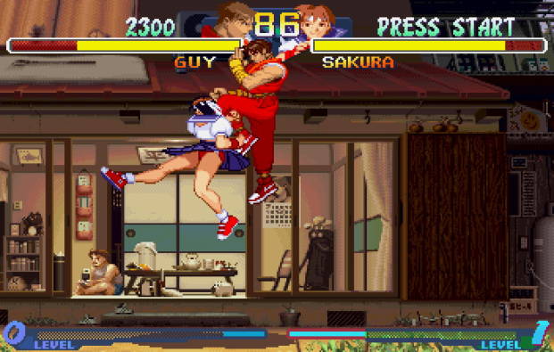 Ora esta compilação incide principalmente na trilogia Street Fighter Alpha, com uma versão practicamente arcade perfect do primeiro jogo, contendo o habitual modo arcade e versus, mas também um dramatic battle expandido (onde podemos escolher qualquer par de personagens) e um modo survival que creio que não vinha incluído tanto na versão original, como nas conversões para as consolas de 32bit que lhe seguiram. Segue-se mais uma excelente adaptação do Street Fighter Alpha 2, com os mesmos modos de jogo. Mas, desbloqueado logo de início, temos também a revisão Street Fighter Alpha 2 Gold, que é essencialmente uma conversão do Street Fighter Zero 2 Alpha (nomenclatura confusa como manda a lei) que havia saído originalmente nas arcades nipónicas. Estra revisão, para além de possuir os mesmos modos de jogo, inclui também uma série de personagens adicionais (nas suas versões EX, ou seja, inspiradas pelo Super Street Fighter II, mais a Cammy). É uma versão que inclui também alguns esperados rebalanceamentos e pequenas mudanças na jogabilidade, como a forma como os custom combos são agora despoletados.