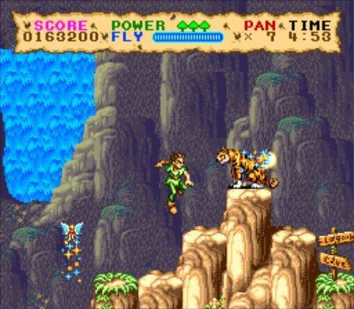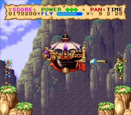 A nível audiovisual é um jogo simples, mas possui o seu charme. Iremos percorrer florestas, montanhas, cavernas e também os interiores do navio de Hook, com níveis bem coloridos, mas com um nível de detalhe algo inconsistente, com alguns níveis bem mais simples que outros. Não esperem por visuais tão cuidados como um Yoshi’s Island ou Megaman X, mas cumpre bem o seu papel, apesar que se as sprites fossem um nadinha maiores não me queixava. A música é também bastante agradável, com uma banda sonora muito sinfónica cujas músicas presumo eu que sejam adaptações da banda sonora do filme. Este tipo de som mais sinfónico é algo que a Super Nintendo faz muito bem!