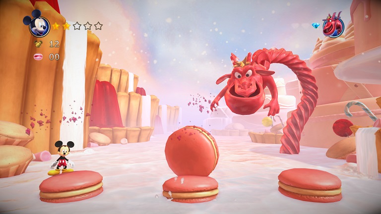 Os controlos mantêm-se semelhantes, com um botão para saltar e outro para atirar objectos e ambos servem para atacar os inimigos. Saltando-lhes em cima, no entanto, se pressionarmos novamente o botão de salto justamente quando estivermos prestes a atingir os inimigos, conseguimos saltar bem mais alto, o que deveremos mesmo fazer para melhor explorar os níveis e descobrir todos os seus segredos. Felizmente os controlos ficaram excelentes, particularmente se utilizarmos um gamepad. O castelo serve agora de hub que pode ser explorado livremente e todos os níveis que já teríamos passado anteriormente poderão também serem rejogados, pois como acabei de referir, existem imensos segredos para descobrir ao longo dos níveis que nos desbloquearão alguns extras como vestimentas adicionais para o rato.