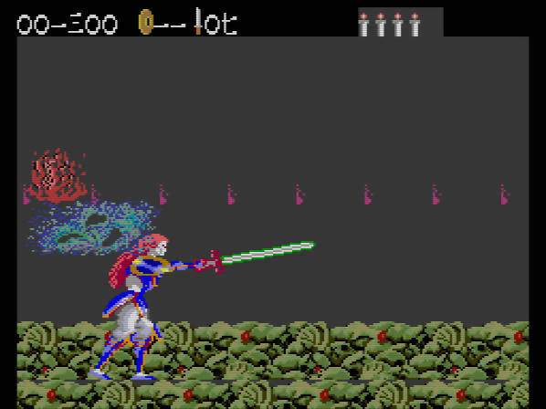 Mas o seu maior problema é a sua enorme dificuldade, que é muitas vezes injusta. Para além das dezenas de inimigos e obstáculos que são atirados contra nós de forma incessante ao longo dos muitos níveis, o combate e platforming poderia ser também melhor. Não temos mais nenhum ataque a não ser a espada, o que nos deixa muito vulneráveis tendo em conta a agilidade dos inimigos, as plataformas móveis obrigam-nos a que nos movamos em conjunto com a plataforma, caso contrário caímos e se perdermos uma vida, podemos não recomeçar a parir do nível onde estamos, mas sim um nível bastante anterior! Um detalhe interessante é o facto de, se cairmos nalgum abismo não perdemos nenhuma vida, mas somos largados no inferno, um nível de perspectiva vista de cima e, para escapar, temos duas hipóteses. Ou saltamos para uma poça de sangue/lava e, caso tenhamos o máximo possível de dinheiro amealhado somos transportados de volta ou podemos procurar o “chefe” lá do Inferno que nos dá a escolher um de vários baús à sua volta: alguns contém um power up que nos regenere parcialmente a vida e somos levados de volta, outros matam-nos logo.