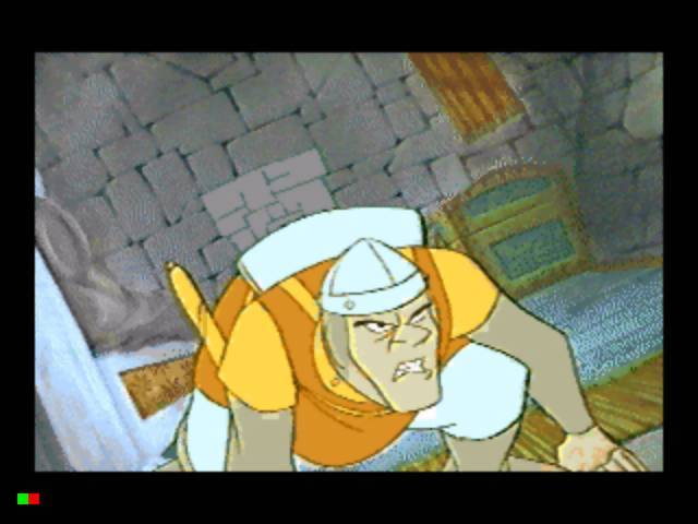 Todo o jogo é uma sequência de quick time events gigante, com o Dirk a mover-se pelo castelo e inúmeros inimigos, armadilhas e obstáculos a atravessarem-se no seu caminho. Qual o problema? Ao contrário dos quick time events que temos actualmente, no Dragon’s Lair não existe nenhuma indicação visual de quando devemos pressionar algum botão, muito menos qual o botão a pressionar! Basicamente devemos usar as direcções do d-pad para mover Dirk ou o botão B para que este use a sua espada para atacar inimigos. Adivinhar que botão devemos pressionar e em qual timing vai ser o maior desafio, embora por vezes o jogo dê algumas indicações visuais como uma porta ou outros objectos brilharem, incando-nos que devemos pressionar imediatamente o d-pad na direcção da porta em relação à posição actual do Dirk. Se falharmos, Dirk morre e temos apenas 5 vidas. Felizmente temos continues infinitos, embora estes nos obriguem a recomeçar a partir de um checkpoint anterior.