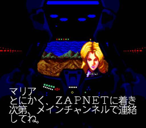 No que diz respeito aos visuais, o jogo até que é algo apelativo, ao apresentar níveis variados, com alguns efeitos de parallax scrolling, e sprites grandes e bem detalhadas. Os cenários tanto podem ter temáticas mais urbanas ou industriais, bem como cenários mais naturais como florestas ou outros mais orgânicos, o que me leva a entender que não são só robots que nos atacam, mas outras criaturas monstruosas e aparentemente alienígenas também. Intercalado com os níveis vamos tendo uma série de cutscenes muito simples que vão avançando a história. Não têm é qualquer voice acting a acompanhar, pelo que vamos ter de lidar com muito texto em japonês. Já a banda sonora por outro lado até que é bastante agradável, com alguns temas rock e repletos de sintetizadores, mesmo como era típico na décade de 80.