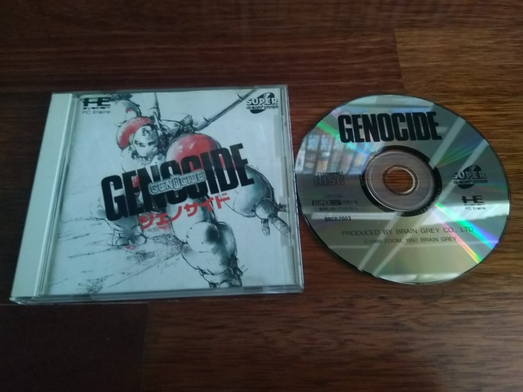 Vamos voltar às rapidinhas à PC-Engine para um jogo que em imagens me pareceu muito porreiro mas depois, quando chegou a vez de o jogar, todo o entusiasmo inicial desvaneceu-se por completo. Este Genocide, produzido originalmente pelos nipónicos Zoom para o mítico computador Sharp X68000 em 1989, acabou por receber uma versão para a PC-Engine CD em 1992, cuja conversão ficou a cargo da também nipónica e desconhecida Brain Grey. O meu exemplar foi comprado num lote considerável de jogos PC-Engine / Turbografx-16 que comprei a um particular algures em Janeiro. Este foi dos mais baratos do lote, tendo-me custado menos de 5€.
