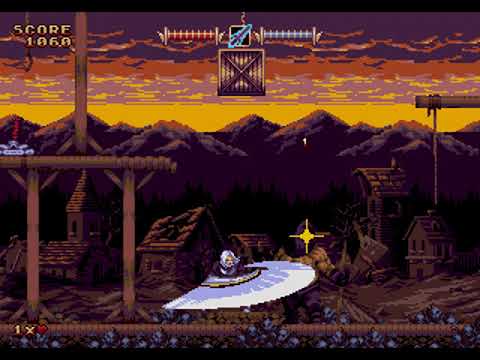 No que diz respeito aos audiovisuais, devo dizer que gostei bastante do que a Neofid conseguiu implementar aqui. Por um lado o jogo possui visuais medievais algo sinistros e que muito fazem lembrar jogos como Ghouls ‘n Ghosts ou até o Castlevania (aliás o nível no castelo é mesmo uma grande homenagem a Castlevania, até as medusa heads e esqueletos que atiram os seus próprios ossos lá estão!). E essa direcção artística numa onda mais dark fantasy sempre foi algo que gostei. Mas para além disso, o jogo possui, na maior parte do tempo, gráficos muito bem detalhados, tanto nos níveis com as suas múltiplas camadas de parallax scrolling, como no detalhe e animações de personagens principais e certos inimigos. Há um ou outro nível se calhar menos trabalhado, mas no geral acho que a Neofid fez um óptimo trabalho na parte gráfica. É que também ao optar por tons mais escuros nos gráficos, acaba também por ser uma óptima maneira de camuflar as limitações da própria Mega Drive, cujo hardware não consegue apresentar, nativamente, mais do que 64 cores em simultâneo no ecrã. As músicas são também bastante variadas e agradáveis. Alguns dos temas fazem-me lembrar de forma imediata as músicas enérgicas, com melodias sonantes e ocasionalmente com alguns arranjos mais sinistros dos Castlevania, outras como o tema dos bosses ou quando apanhamos um power up de invencibilidade são bem mais rock. Ou a música super tensa, mas em crescendo, do nível da caverna! Há aqui uma boa variedade e criatividade e a Neofid conseguiu tirar bom proveito do chip de som da Mega Drive.