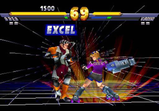 No que diz respeito aos modos de jogo, contem com os habituais arcade e versus, sendo que este último permite-nos optar por entre combates simples de 1 contra 1, ou em equipas de vários lutadores que têm de ser derrotados consecutivamente. O Practice está também aqui representado, uma vez mais com duas opções distintas: a primeira é a training onde como o nome indica poderemos praticar livremente todos os golpes de cada personagem. A outra opção é o trial, que por sua vez nos dá acesso ao expert mode, semelhante ao introduzido no jogo anterior. Estas são “missões” que temos de desempenhar com cada personagem, que consistem maioritariamente em desencadear com sucesso uma série de combos e golpes especiais cada vez mais complexos. É nesse modo de jogo onde poderemos desbloquear legitimamente todo o conteúdo desbloqueável como personagens secretas, embora estas também possam ser desbloqueadas através de códigos. Aparentemente poderemos também desbloquear o Maniac Mode, que contém missões ainda mais complexas. Por fim temos também o Director e o Bonus Game. O primeiro, confesso que não experimentei, mas aparentemente permite-nos gravar combates e customizar vários detalhes como os cenários ou mesmo a câmara. O último é essencialmente uma compilação de vários mini jogos. Inicialmente temos apenas o Taru, um mini jogo onde teremos de partir uma série de barris de forma consecutiva, mas poderemos também desbloquear os outros mini jogos que são jogados no modo arcade (destruir o satélite e eliminar um inimigo com 3 excel moves). Portanto, uma vez mais, até que é um jogo de luta com bastante conteúdo para uma Playstation.