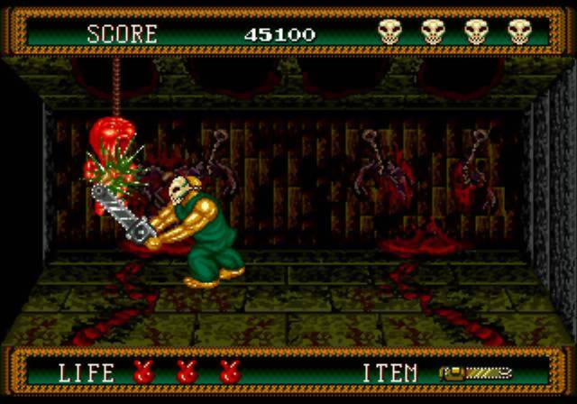 A nível de jogabilidade este é um jogo muito semelhante ao seu precursor, ou seja, uma espécie de beat ‘em up primitivo, onde temos apenas um plano de movimento, com controlos simples (um botão para saltar, outro para atacar) e uma vez mais com muita violência e gore à mistura. Rick, pelo menos quando tem a máscara posta, é um gajo todo bombado pelo que não é muito ágil e os seus saltos vão sendo curtos, porém necessários, não só para ultrapassar alguns pequenos obstáculos, mas também para nos desviarmos de eventuais ataques baixos dos inimigos. Tal como no primeiro jogo, vamos poder também encontrar uma série de armas que poderemos apanhar como um tubo metálico que, tal como no primeiro jogo, atira os inimigos contra uma parede, desfazendo-os numa poça de sangue e carne. Outras armas como um osso gigante, tesouras que podem atiradas, uma motoserra ou mesmo uma caçadeira são algumas que poderemos vir a encontrar. Naturalmente, o jogo não é fácil, pois teremos de memorizar quais os inimigos que teremos de enfrentar e os seus padrões de ataque. Mediante o grau de dificuldade escolhido a nossa barra de vida terá entre 2 a 4 “corações” e visto que não existem itens regenerativos, é fácil perder vidas caso cometamos muitos erros. Felizmente esta sequela tem um sistema de passwords que nos permite continuar a partir do último nível que tenhamos concluído com sucesso.