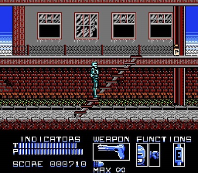 Portanto ao longo de 6 níveis iremos encarnar no papel de Robocop, onde teremos de limpar as ruas de Detroit de todo o crime. Bom, na verdade começamos pelas ruas de Detroit, mas tal como o filme iremos também explorar outros cenários como a Câmara Municipal, uma fábrica ou as instalações da mega corporação OCP. Os controlos são relativamente simples, com o D-Pad a servir para mover o cyborg, recolher objecto e até trocar de arma. Os botões faciais servem para dar socos ou disparar a arma de fogo que tenhamos equipada no momento. No entanto, nem sempre se podem usar as armas de fogo, pois como bom polícia que é o Robocop, não podemos colocar em risco a vida de inocentes. “Mas só há bandidos neste jogo” reclamam vocês e com razão, mas é o que é. Particularmente nos primeiros níveis vamos ter várias zonas onde usar armas de fogo é proibido e o seu botão serve então para dar socos também.