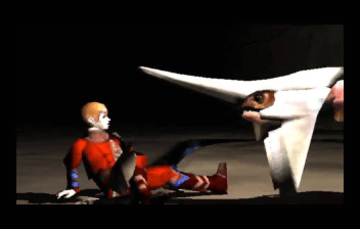 Mas vamos agora para os audiovisuais. De um ponto de vista meramente técnico, o jogo tem tanto de bom como de mau, devido às limitações da própria Sega Saturn que não foi de todo um sistema desenvolvido para renderizar gráficos 3D de alta qualidade. Tal como nos outros Panzers da Saturn, o jogo tem os seus melhores momentos naquelas áreas mais abertas. Outras, particularmente as aldeias e vilas que vamos explorando, ficam bastante aquém das expectativas com cenários com muito poucos polígonos. O jogo tem também algumas cutscenes em CGI mas sejamos honestos, a qualidade dessas CGI estão longe do que a Squaresoft nos habituou nessa época. Passando esses aspectos mais técnicos, vamos ao que interessa: Este jogo é fantástico na sua direcção artística. O mundo de Panzer Dragoon sempre foi bastante bizarro e esotérico com todas as suas ruínas antigas e a estranha tecnologia e criaturas que os acompanham. E nisso este Saga marca muitos pontos! A narrativa está também bastante boa, apesar de ser um jogo mais curto que outros RPGs seus contemporâneos, a história vai-se mantendo sempre interessante, apesar de por vezes não ser muito claro o que temos de fazer para progredir, mesmo não havendo assim tantos locais para explorar. De resto todos os diálogos são acompanhados de voice acting, o que é algo notável para um RPG da época. Tirando algumas cutscenes em CGI, cujos diálogos são falados naquele dialecto estranho e especialmente criado para esta série, os restantes diálogos são narrados em japonês, com legendas a acompanhar. A banda sonora é outro ponto muito forte deste jogo. Temos músicas calmas e ambientais (o tema Water Ruins é simplesmente hipnótico), outras mais orquestrais e outras até com um toque de electrónica. No fundo, é uma banda sonora bastante cinemática e que se adequa perfeitamente à narrativa e às diferentes zonas que vamos explorando.