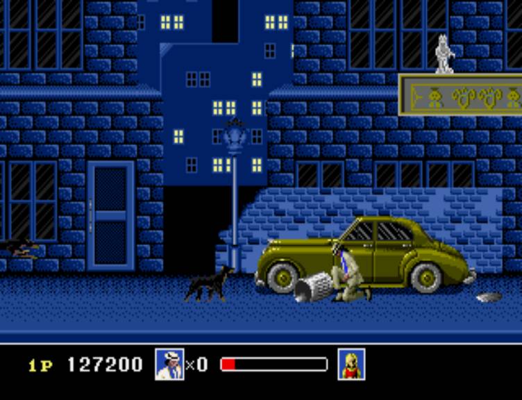 Ora tal como as outras versões este jogo é baseado no filme de 1988, onde Michael Jackson tem de salvar uma série de crianças das garras do vilão Mr. Big. Ora em retrospectiva, fazer um filme (e posteriormente videojogos) onde o Michael Jackson “salva” crianças provavelmente não seria a melhor ideia de sempre, mas adiante. Tal como na versão 8bit este é então um jogo de acção/plataformas onde teremos de explorar uma série de distintos cenários (os mesmos que na versão MS) e procurar crianças escondidas na maior variedade de locais: por detrás de portas, janelas, em cavernas, dentro de caixotes do lixo, em malas de carros, etc. Tudo isto enquanto combatemos uma série de inimigos que vão surgindo infinitamente. Uma vez encontradas todas as crianças, surge um macaco que se coloca às nossas cavalitas e nos indica o local do boss do nível. Quando lá chegamos, na verdade temos não um boss, mas uma série de inimigos para derrotar.