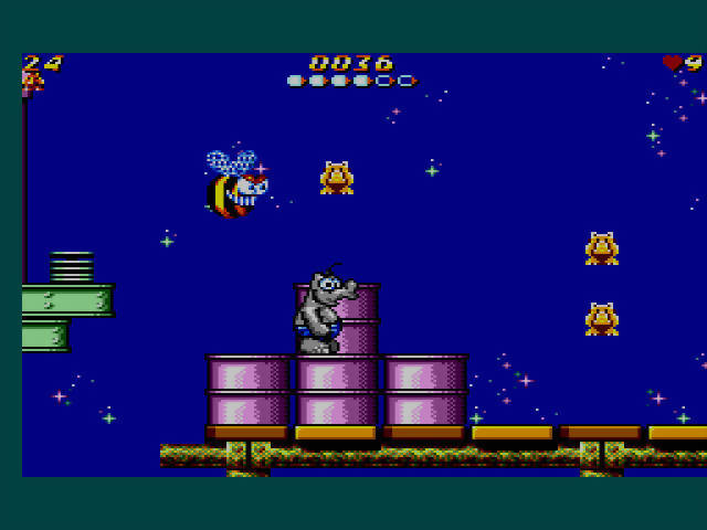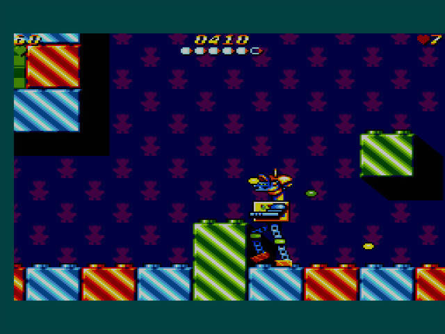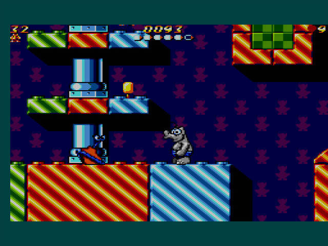 Visualmente é um jogo bastante colorido e com níveis bem distintos entre si. O primeiro é uma casa cheia de brinquedos e que sinceramente até me fez lembrar um pouco o James Pond II: Robocod. Em seguida passamos para os subterrâneos com níveis naturalmente mais escuros, depois para um arranha céus em obras e os últimos níveis já são escritórios (se bem que se parecem tudo menos isso) e uma selva. Todos possuem um bom nível de detalhe e com inimigos distintos entre si. Já as músicas, bom, são mesmo aquelas típicas de estúdios do Reino Unido que programavam para sistemas 8bit. Não são própriamente más, mas temos apenas duas músicas que iremos ouvir ao longo de todo o jogo: uma para os níveis normais, outra para os bosses. Poderia então haver uma maior variedade.